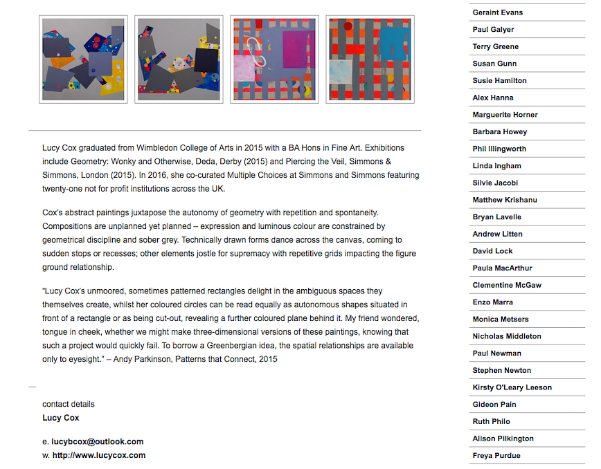 Our members represent some of the most exciting emerging and award winning painting in the UK today and include European Sovereign Painters Prize winner Susan Gunn, Pollock-Krasner awardee Kelly Jayne, East London Painting Prize winner Nathan Eastwood, John Moores Prize winner Nicholas Middleton, British Academy awardee James Quin, Birtle Prize winner Simon Burton, Venice Biennale exhibitors Marguerite Horner and Phil Illingworth and Griffin Prize exhibitor Matthew Krishanu.